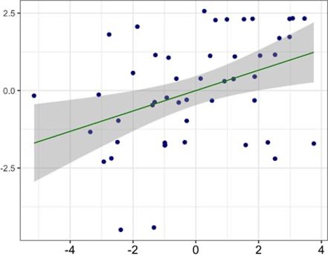 Fig. 1. Relación entre el estatus socioeconómico (eje X) y el dominio del inglés (eje Y), que, al menos en Colombia, muestra una correlación significativa. Figura 6 del artículo utilizado bajo licencia CC BY 4.0.