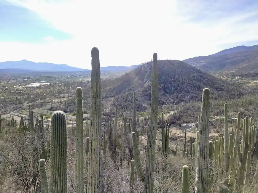 Imagen 1. Valle de Tehuacán-Cuicatlán, Puebla. Las cactáceas columnares que se observan son los tetechos (Cephalocereus tetetzo)